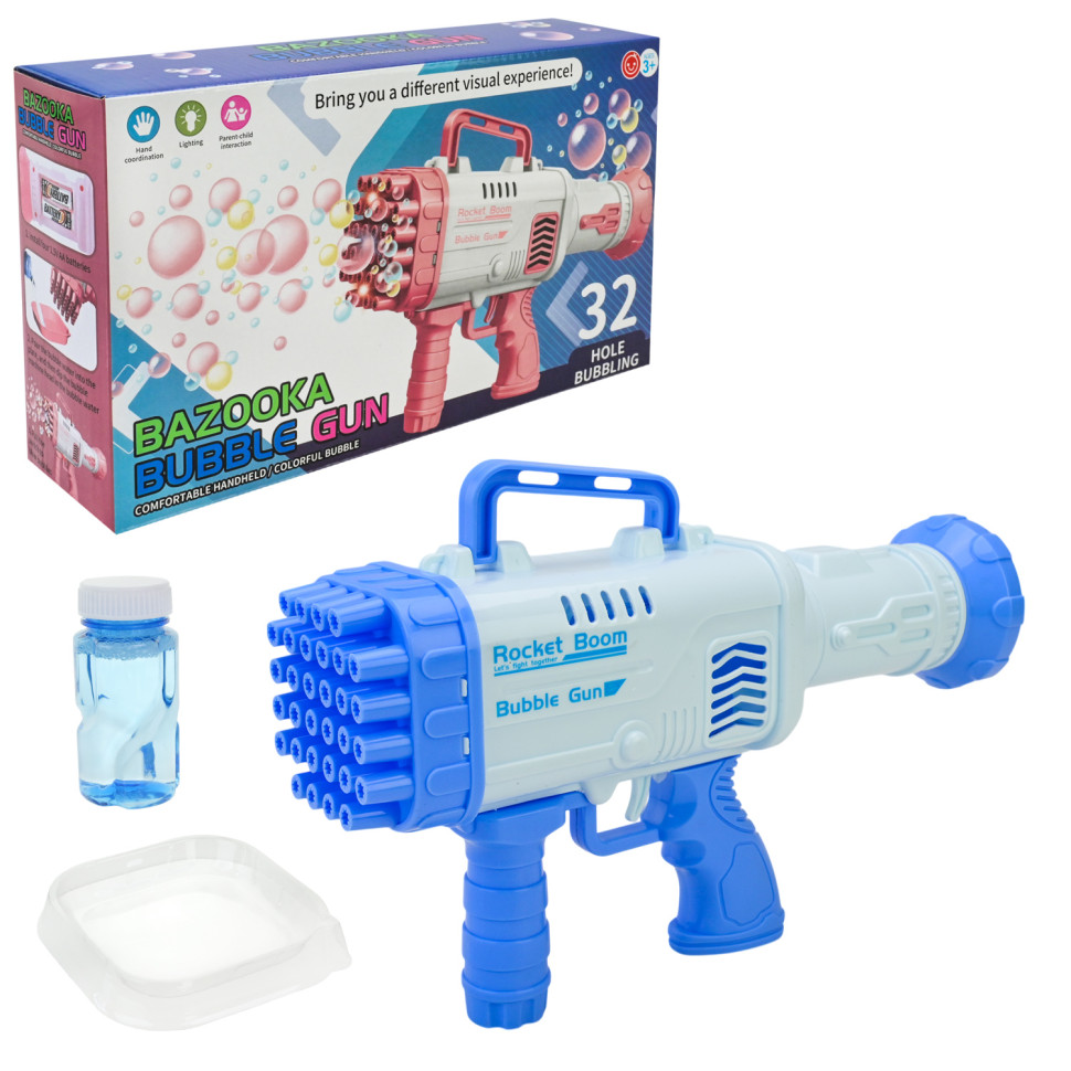 - Завдяки великій кількості отворів (32 отвори) у бластера одночасно видувається багато мильних бульбашок.