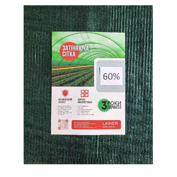 Сітка затіняюча зелена 60% затінення 3х3,4м Lainer