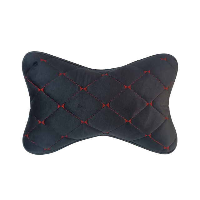 Подушка на підголівник алькантара Ромб Чорний/нитка червона (2шт/к-кт)