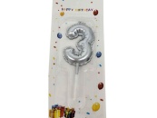 Свічка-цифра 3 срібло Округла арт.086 ТМ PRC