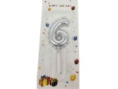 Свічка-цифра 6 срібло Округла арт.086 ТМ PRC