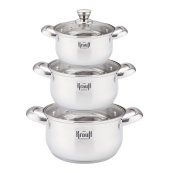 Набір кастрюль 6пр нержавіючий (1,7л, 2,4л, 3,3л) з кришкоюТМ Krauff