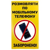 Наліпка "Розмовляти по мобiльному телефону заборонено" жовта плівка
