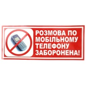 Наліпка "Розмова по мобiльному телефону заборонена" червоний напис(135мм*60мм) (уп.10шт)