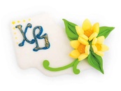 Прикраса пасхальна Звістка з квітами №1 70х40мм жовтий ТМУКРАСА