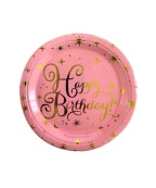 Тарілки Happy Birthday 18см рожеві із золотом 10шт/уп паперові #24 ТМPELICAN