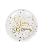 Тарілки Happy Birthday 18см білі із золотими зірочками 10шт/уп паперові #25 ТМPELICAN