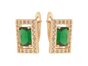 Сережки англійська застібка Позолота 18К Прямокутники з зеленими кристалами (310088) ТМ XUPING