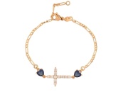 Браслет Позолота 18К Хрестик з синіми кристальними серцями 15,16,5см*2-13мм 302086 ТМ XUPING