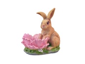 Садова фігурка полістоун 24*14*25см Кашпо Зайчик з квіткою ТМДеколайн
