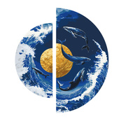 Картина по номерам "Танец китов у золотой планеты" OSR1002 с красками металлик 67х67 см