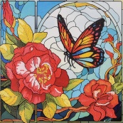 Алмазная мозаика "Витражные цветы" DEEX16280 неполная выкладка 30х30 см