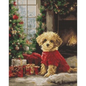 Алмазная мозаика "Пудель у елки" AMO20011, 40х50 см