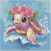Алмазная мозаика "Черепаха в венке" DBS52203 неполная выкладка 25х25 см