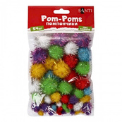 Декоративные помпоны с люрексом для творчества 955438 d-8 мм,15 мм,25 мм, 54 шт