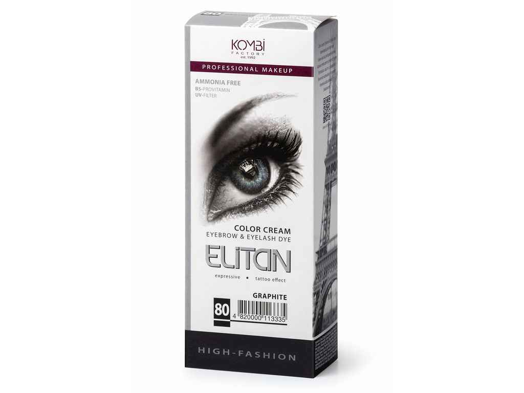 Професійна крем-фарба для брів і вій без аміаку «Елітан» №80, колір Графіт, туба.