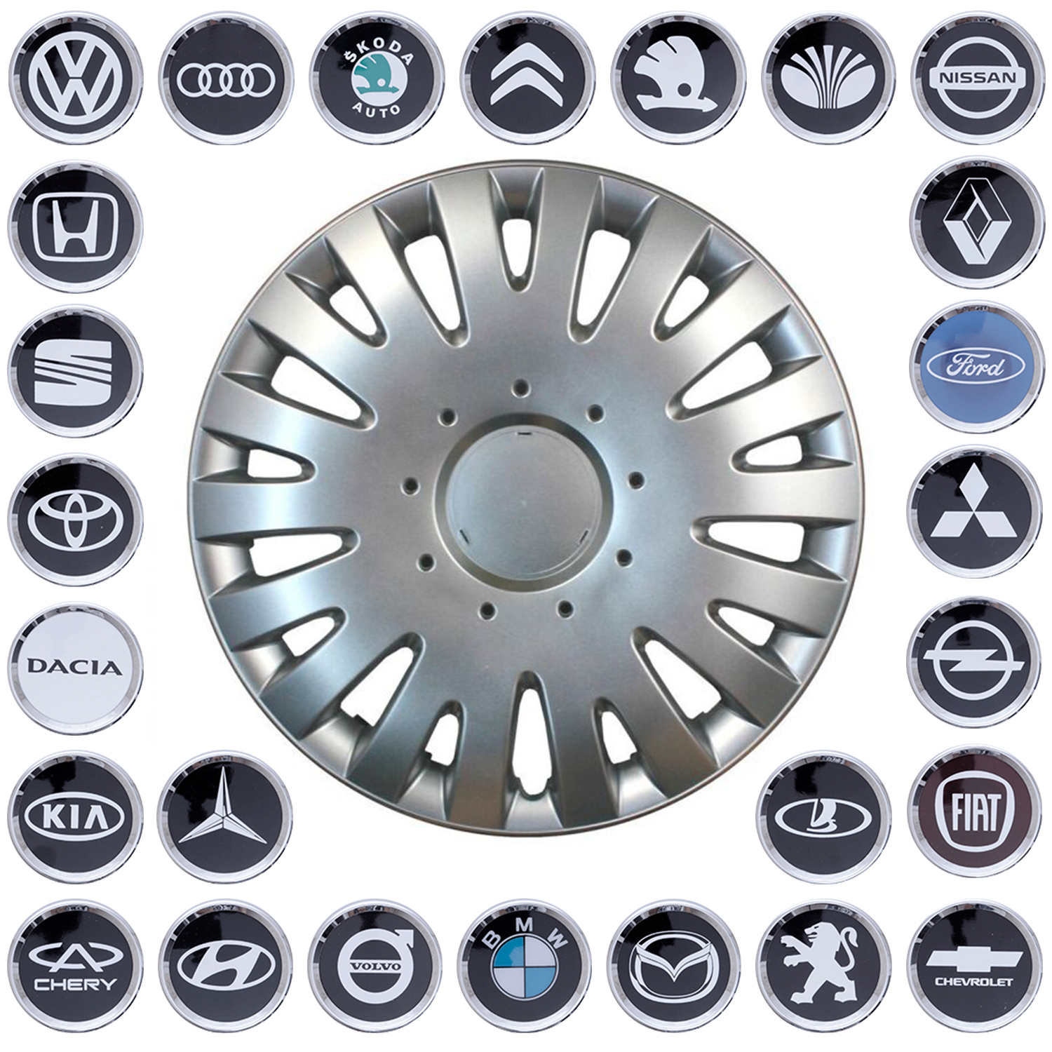 Колпаки на колеса авто предназначены для защиты колес и как декоративный элемент колес. Функция защиты колес необходима зимой, потому что колпаки смогут защитить колеса от снега, слякоти, соли и других сопутствующих этому периоду смесей. Можно купить колесный колпак вместе с эмблемой Вашего авто. Эмблема не клеится на колпак, а крепится к нему хромированной пластиной.