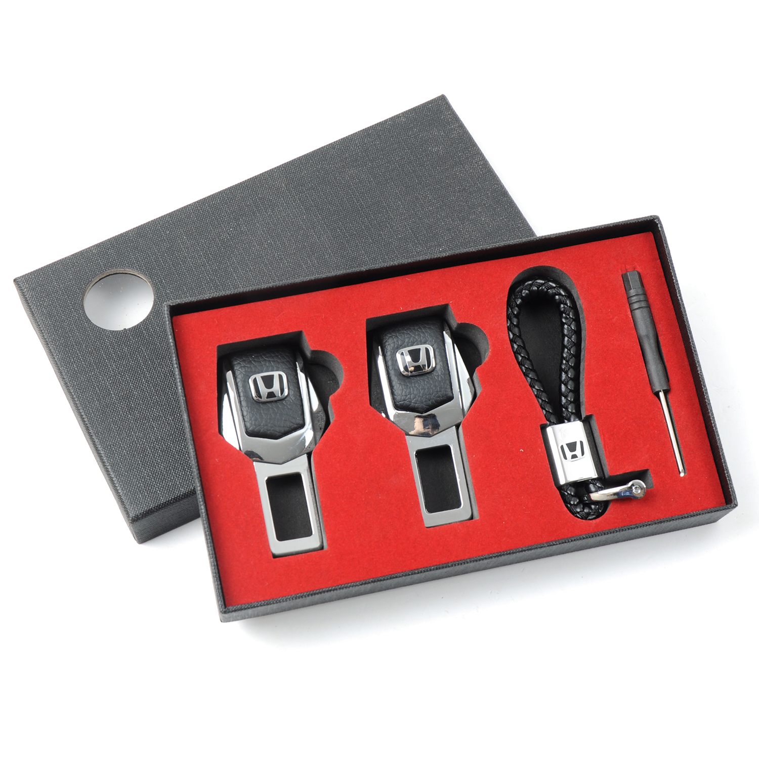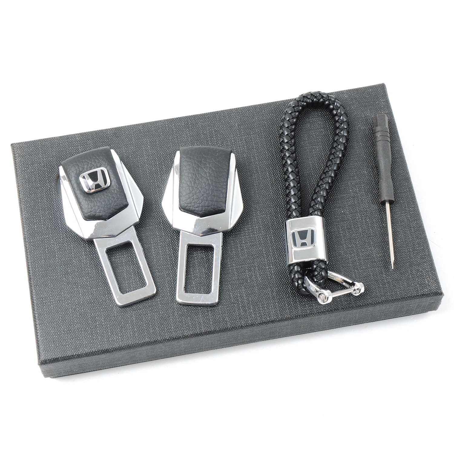 Подарунковий набір HONDA 2в1 (фіксатор ременів, плетений брелок) №2 хром