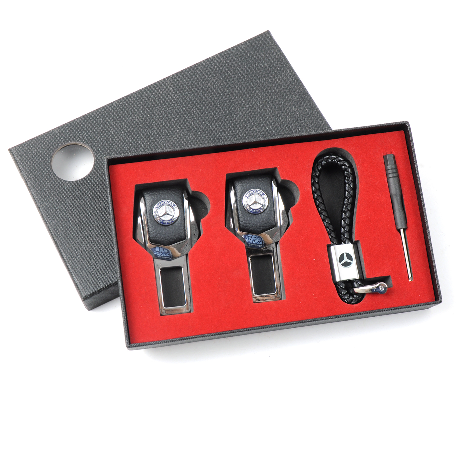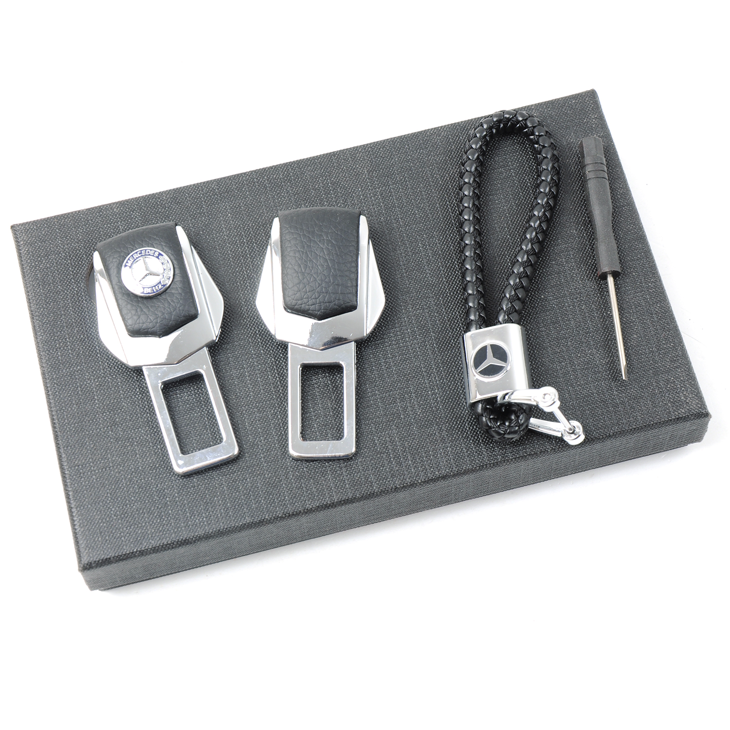 Подарунковий набір MERCEDES 2в1 (фіксатор ременів, плетений брелок) №2 хром