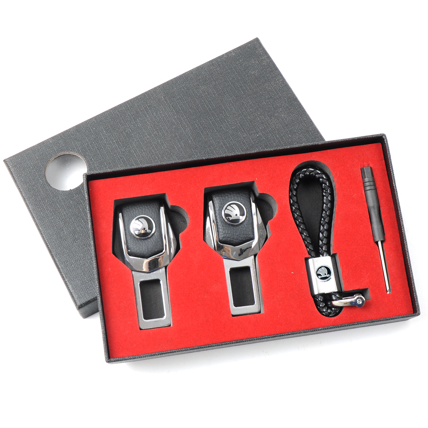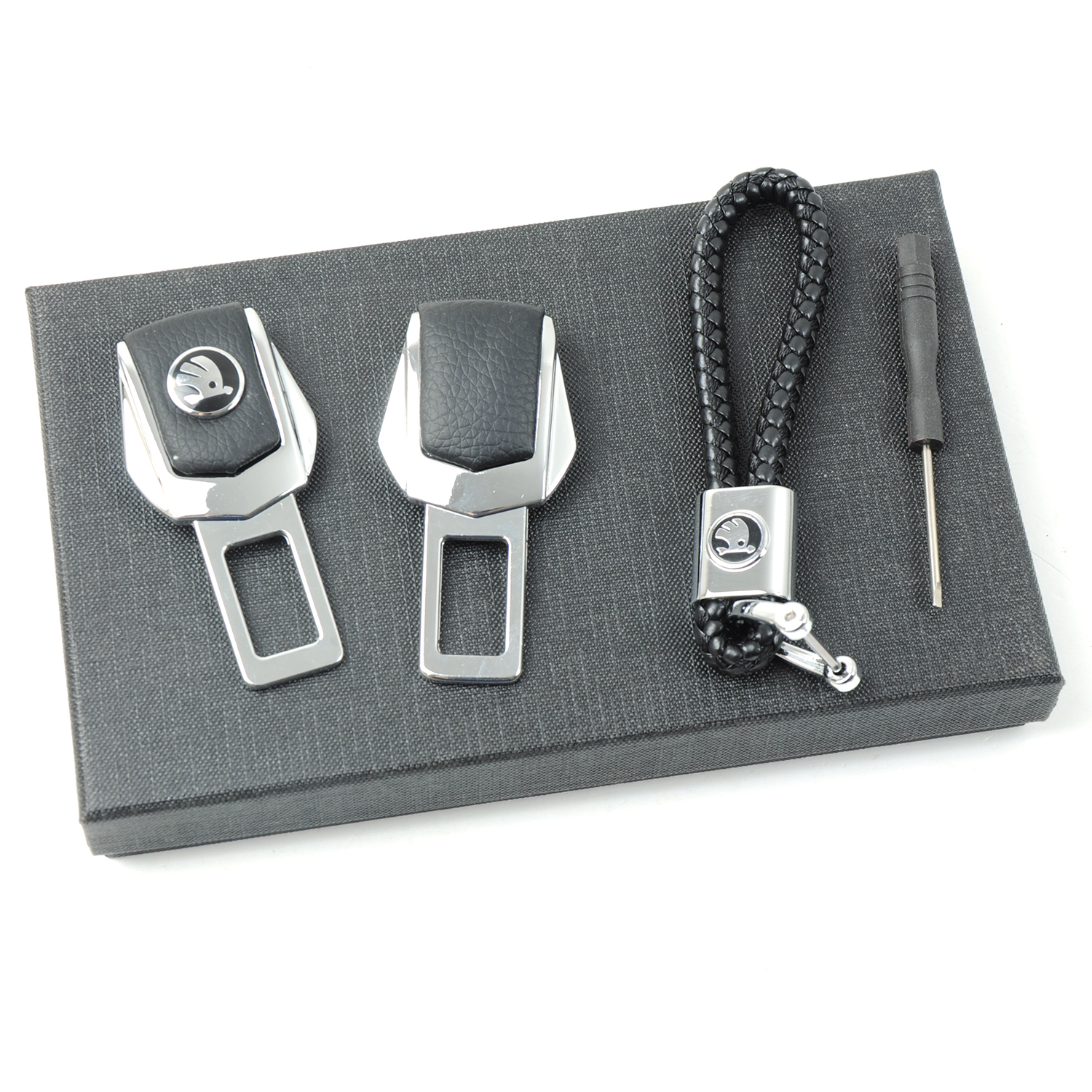 Подарунковий набір SKODA 2в1 (фіксатор ременів, плетений брелок) №2 хром