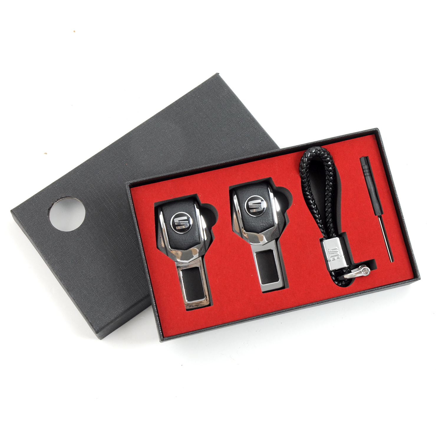Подарунковий набір SEAT 2в1 (фіксатор ременів, плетений брелок) №2 хром