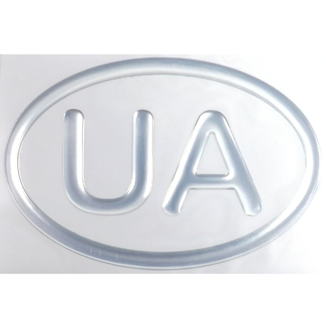 Наліпка силіконова "UA" контур в овалі хром (12x8)