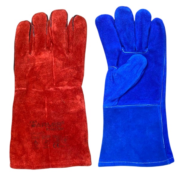 Краги п`ятипалі 35см (спилок) червоні/сині, з підкладом