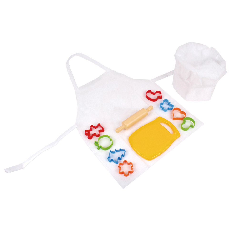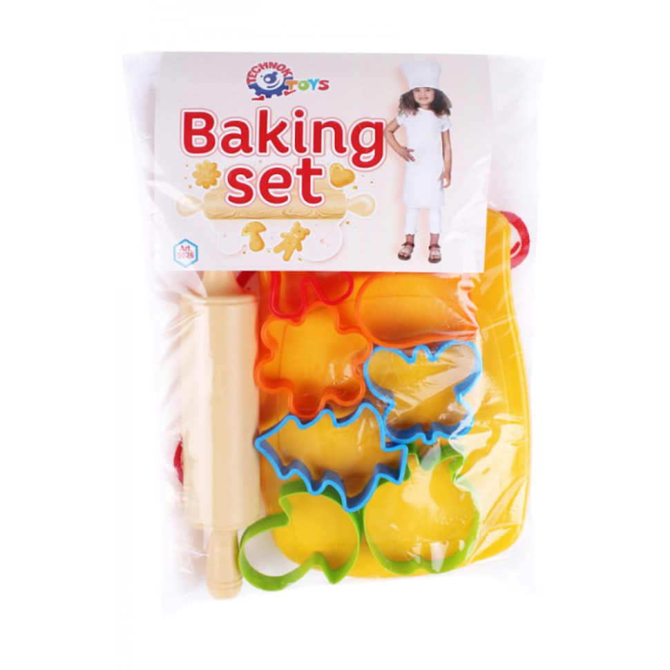 В наборе от ТехноК есть все необходимое для первых кондитерских шедевров: 8 цветных формочек, дощечка и скалка. Можно вырезать пирожные различной формы, выбрав что Вам нравится. С такой игрушкой Ваш малыш почувствует себя профессиональным шеф-поваром, поскольку в наборе есть белый фартук с ярким рисунком и настоящий поварской колпак. На помощь маме добавляем рецепт вкусной выпечки. Пирожные с шоколадом, орешками или изюмом - решать это только маленьком шефу!