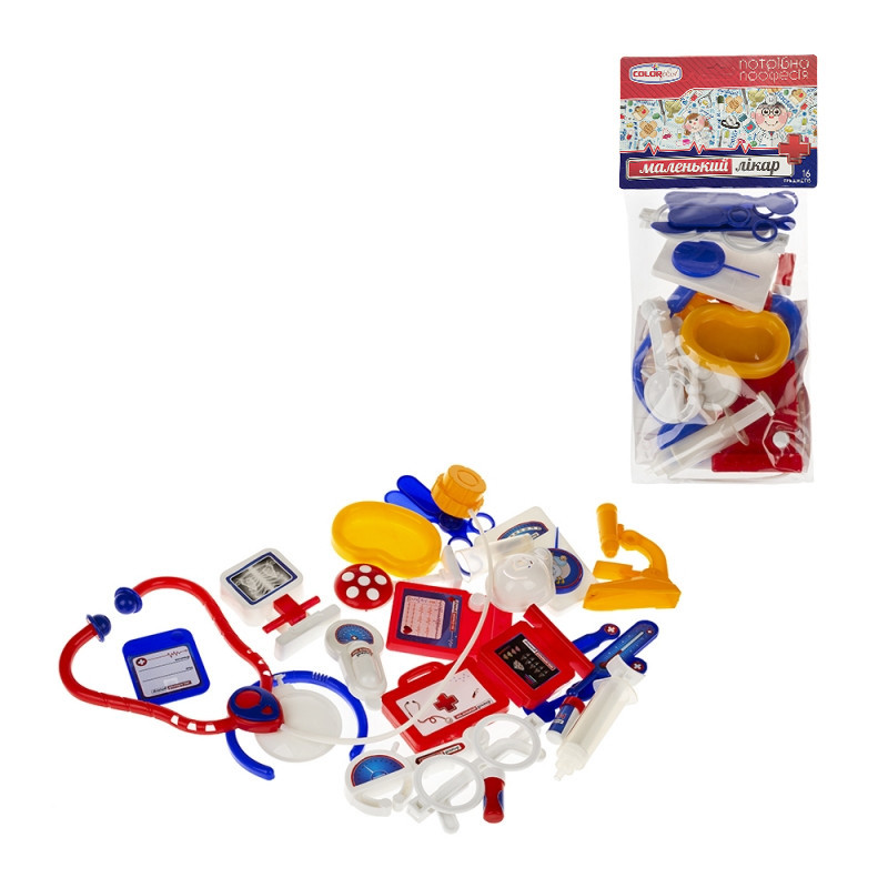 Каждый ребенок с раннего детства представляет себя в какой-то роли: ребенок видит себя спасателем или пожарным, строителем, который строит небоскребы, или врачом, помогающим другим людям победить болезнь. Такие игры уже с детства формируют у малыша представление о будущей профессии.Вот таким мечтателям и пригодится набор "Маленький доктор", - в нем есть все необходимое для врача: очки, рентген аппарат, компьютер, измеритель пульса, пилюли (2 дет.), шприц, стакан, ножницы, градусник, ложечка, скальпель, рефлектор, бейджик, фонендоскоп, ванночка и даже микроскоп.