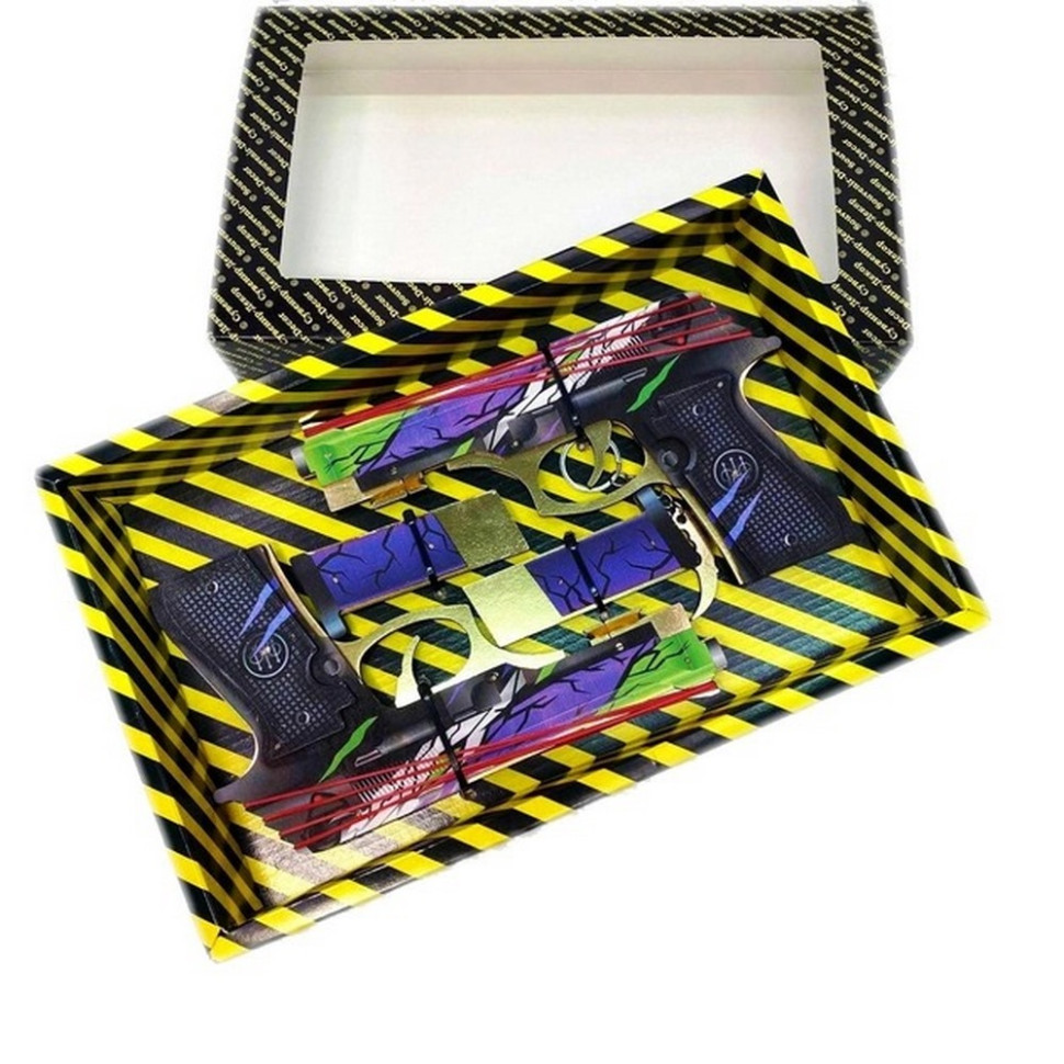 Деревянный пистолет в собранном виде. Все детали продуманы и выполнены из экологических материалов. Игрушка стреляет резинками для денег (резинки есть в комплекте), для них также есть удобное крепление на пистолете. В набор также входят два брелока и наклейки. Размер оружия 25х14х1 см. Аксессуары могут немного отличаться от представленных на фото. Упаковка: Коробка Цвет: Разноцветные Вес с упаковкой: 245 г Габариты в упаковке: 5 x 29.5 x 19 см Габариты без упаковки: 1 x 25 x 13 см Страна производитель: Украина Материал: Дерево Комплектация: Резинка, резинки, 2 брелока, наклейки.