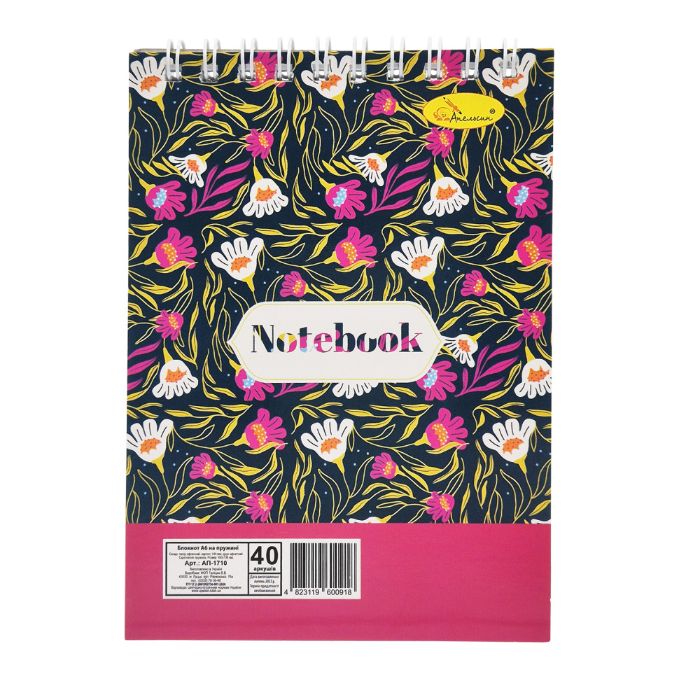 Блокнот для записей АП-1711 А6, 40 листов, пружина сверху