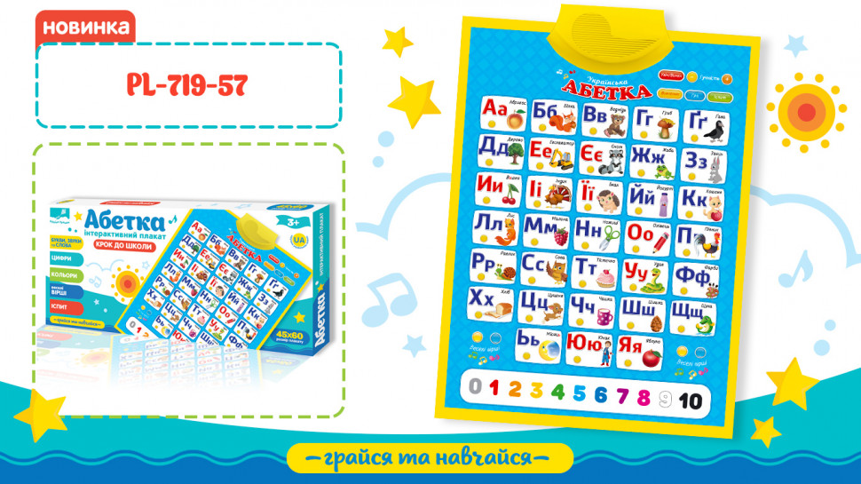 Детский интерактивный плакат "Абетка" PL-719-57 на укр. языке
