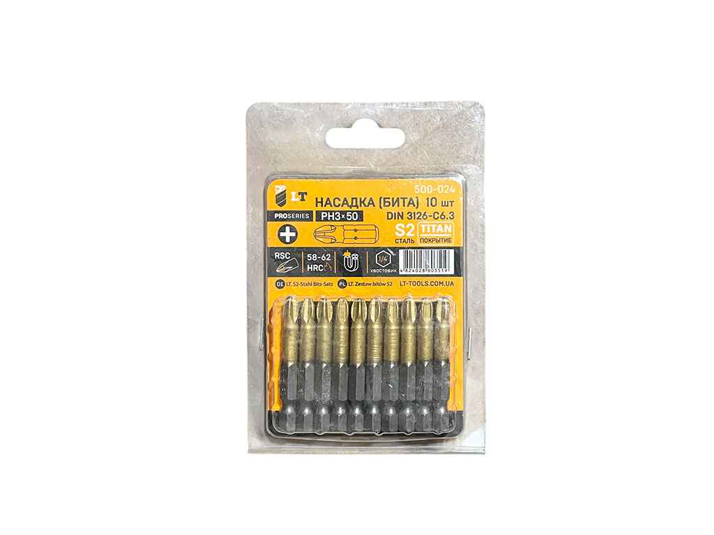 Насадки викрутки РН3*50мм, 1/4 , S2, Титан (10шт в блістері) 500-024 ТМ LT