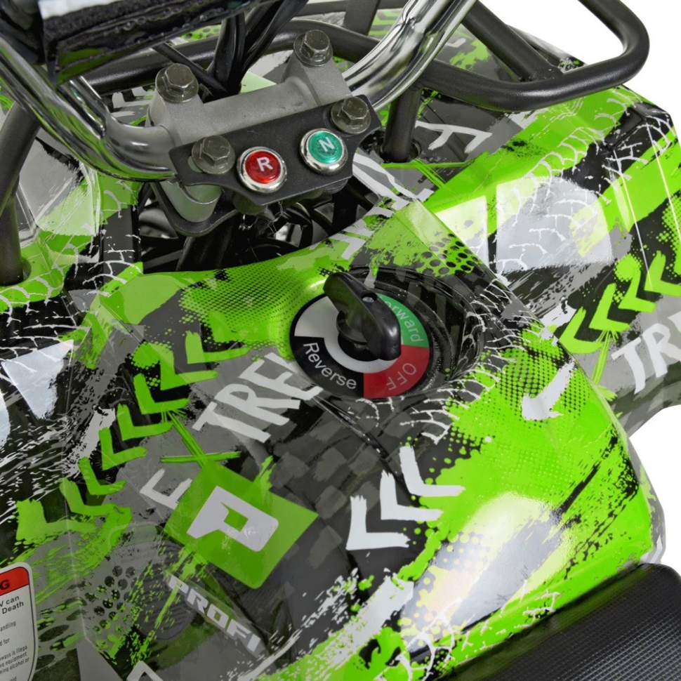 ОСНОВНЫЕ ТЕХНИЧЕСКИЕХАРАКТЕРИСТИКИ ШИРИНА ПО КОЛЕСАМ 55 смШИРИНА НА ПО РУЛЮ 58 смРАССТОЯНИЕ МЕЖДУ ОСЯМИ 71 смВЫСОТА ДО СИДЕНЬЯ 48 смВЫСОТА ОТ ПОДСТАВКИ ДЛЯ НОГ ДО СИДЕНЬЯ 30 смРАМА металлТОРМОЗ ручнойЗАДНИЙ БАГАЖНИК +ПЕРЕДНИЙ БАГАЖНИК +ГЛАВНАЯ ПЕРЕДАЧА цепнаяМОТОР КОЛ-ВО 1шт/ 36V / 800WБАТАРЕЯ V/AH 12V/12AHКОЛ-ВО 3ВРЕМЯ НА ЗАРЯДКУ 8-10 часовЗАРЯДКА 36V / 1,5AШТЕКЕР круглый с тремя отверстиямиДОПУСТИМОСТЬ НАГРУЗКИ ПО ВЕСУ до 65 кгСТАРТ ПОВОРОТ КЛЮЧА +РУЧКА ГАЗА +ТОРМОЗ ручнойКОЛ_ВО СКОРОСТЕЙ В КВАДРОЦИКЛЕ 3СКОРОСТЬ 22 км/чПЕРЕКЛЮЧЕНИЕ СКОРОСТЕЙ ключомДВИЖЕНИЕ ВПЕРЕД НАЗАД РЫЧАГ +СВЕТ ФАРЫ ПЕРЕДНИЕ +ФАРЫ ЗАДНИЕ +КНОПКА ВКЛ/ВЫКЛ +ЗВУК СИГНАЛ +ИНДИКАТОР БАТАРЕИ +СИДЕНЬЕ одноместноеэкокожаКОЛЕСА резина (надувное)переднее (колесо / диск) 32 см / 17 смзаднее (колесо / диск) 31 см / 17 смКОРПУС ОБЫЧНЫЙ +КОРОБКА КОЛ_ВО СЛОЕВ 5ЦВЕТ КАРТОНА коричневыйНАЛИЧИЕ МЕТАЛИЧЕСКОГО КАРКАСА +АМОРТИЗАТОРЫ НАЛИЧИЕ и КОЛ_ВО 2 передних / 1 заднийРЕГУЛИРОВКА ЖЕСТКОСТИ +КОРОБКА (БРУТТО/НЕТТО/РАЗМЕР) 59 кг / 52 кг / 103-57-43,5 см
