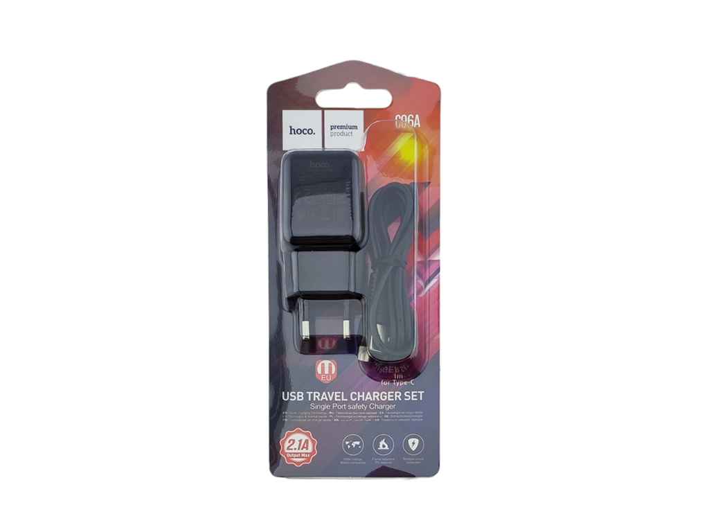 Мережевий зарядний пристрій Type-C C96A 2.1A-1USB 2в1 1м ТМ Hoco