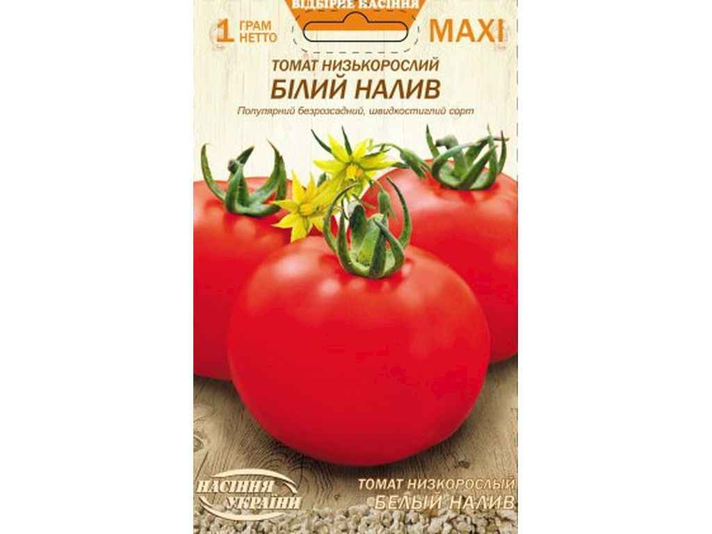 Максі Томат Низькорослий БІЛИЙ НАЛИВ 1г (10 пачок) ТМНАСІННЯ УКРАЇНИ