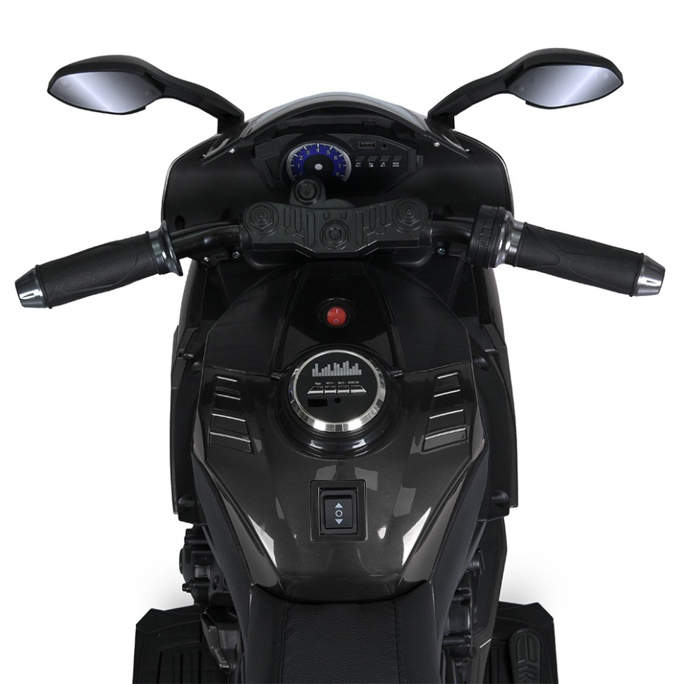 Артикул M 5823ELБренд Bambi RacerТип мотоциклРазмеры товара длина 105смширина по зеркалам/ колесам 50смвысота 62смвес 11,05кгвысота от пола до сиденья 43смвысота от подножки до сиденья 30смвысота до руля 47смДопустимая нагрузка По весу до 30кгПо возрасту 3-8 летМотор Количество/V/RPM 2*35W/12V/RPM15000 Количество/V/RPM 2*35W/12V/RPM15000Батарея Количество/V/AH 12V5AHИндикатор батареи +Зарядка V/mA 12V/1000mAВремя на зарядку 8-10чИндикатор зарядки +Старт Старт тумблерЗвук во время старта +Плавный старт в обычном режиме +Скорость км/ч 5-8км/чКоличество скоростей на панели/на пульте 1Ручка газа +Педаль-тормоз +Свет Фары Передние/Задние фарыПодсветка Панель приборовКнопка вкл/выкл света +Звук Музыка Музыка MP3+USB, AUXКарта памяти +Сигнал на панелиBLUETOOTH +Управление Пульт управления -App(приложение) -Движение вперед/назад тумблерСиденья количество мест 1Ремни безопасности -Материал экокожаШирина посадочного места 17смКолеса Материал EVAРазмер передних колес/дисков 28см/24смРазмер задних колес/дисков 28см/24смПростой монтаж +Корпус Материал Материал ПластикКрыша -Амортизаторы Передние -Задние -Дополнительные функции Двери откр.Демо-режим -Бат.ручка -Доп. Колесики -Кондиционер -Коврик -Прицеп -Дополнительные элементы Картридер SD/TF карт