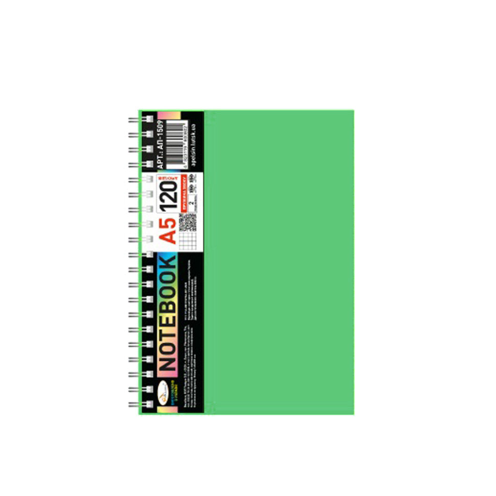Блокнот А5 АП-1509(Green) 120 листов, пружина сбоку