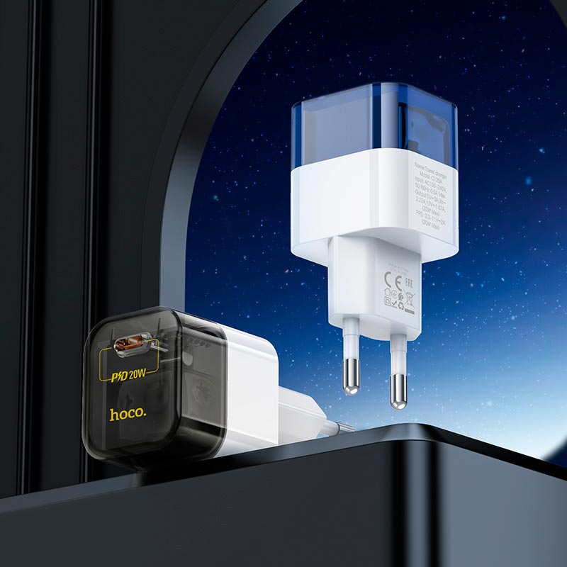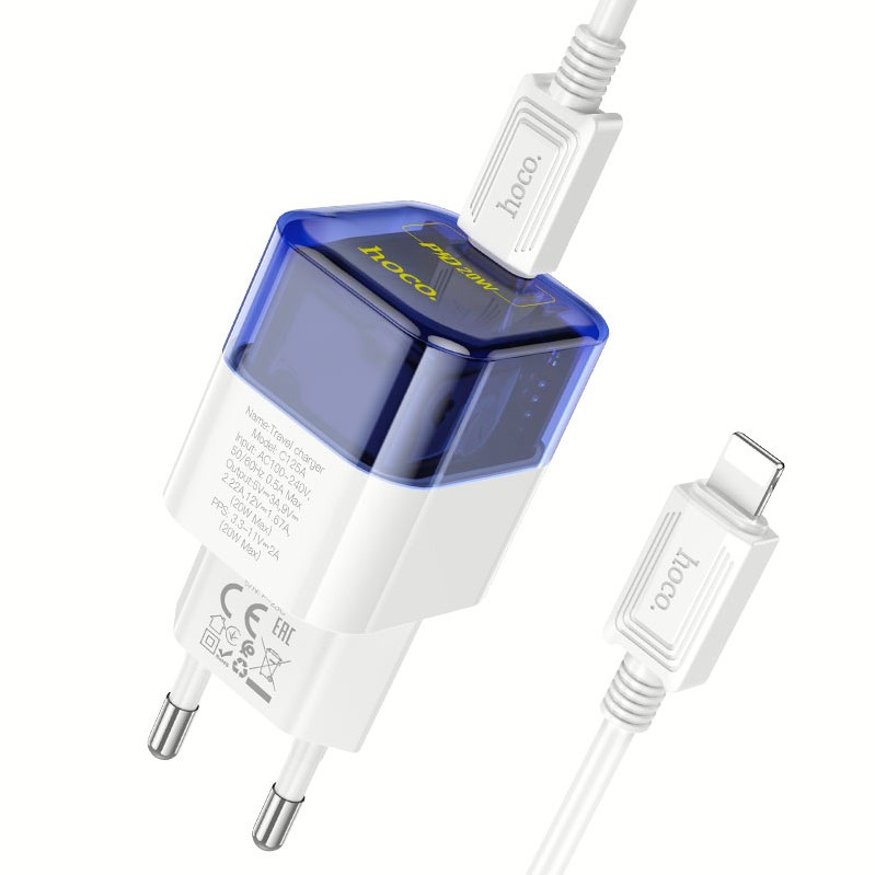 Адаптер 220v (1Type-C) HOCO C125A PD20W Blue/White