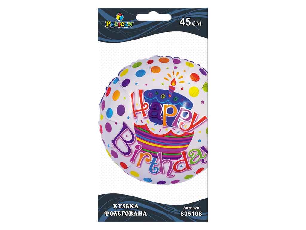 Кулька фольгована 45см Happy Birthday тістечко 1шт 835 108 ТМ PELICAN