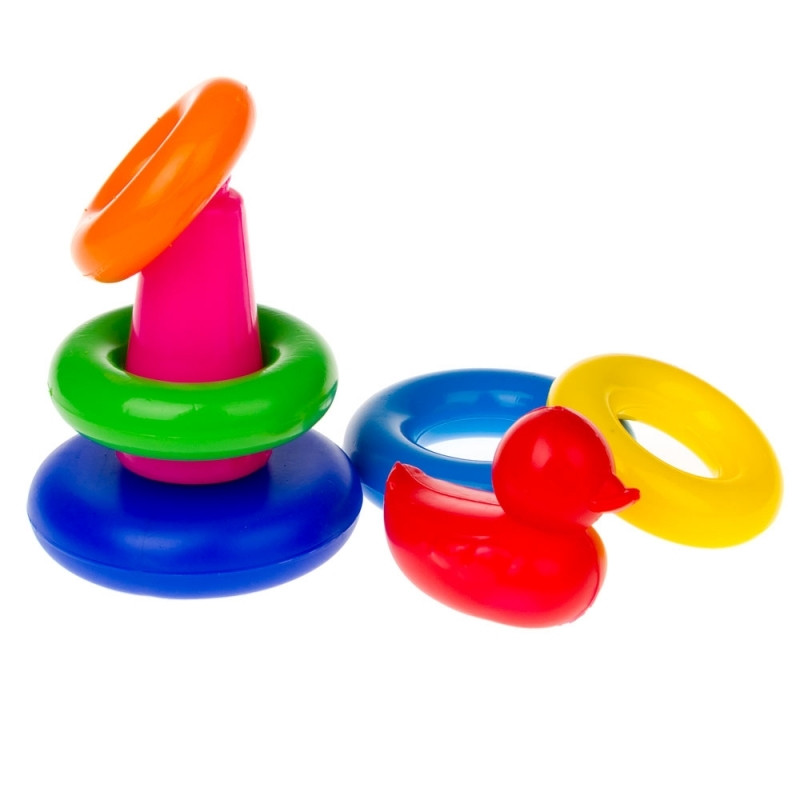 Детская пирамидка №3. Яркая пластиковая пирамидка, состоящая из основания и четырех разных по форме колец с уточкой. Игра с пирамидкой развивает усидчивость, логику, мелкую моторику и внимание.
