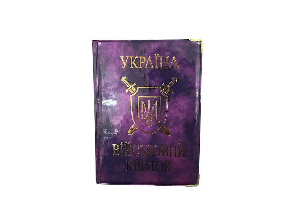 Обкладинка на військовий квиток 42-Vк фіолетовий Золото глянець з гербом ТМTascom