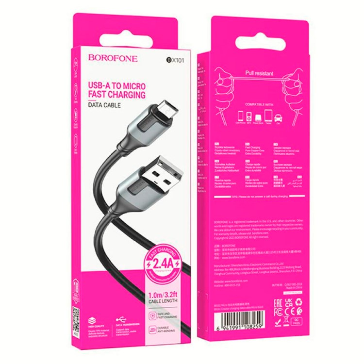 Кабель USB / Micro USB BOROFONE BX101 3.0A /1.0м Black