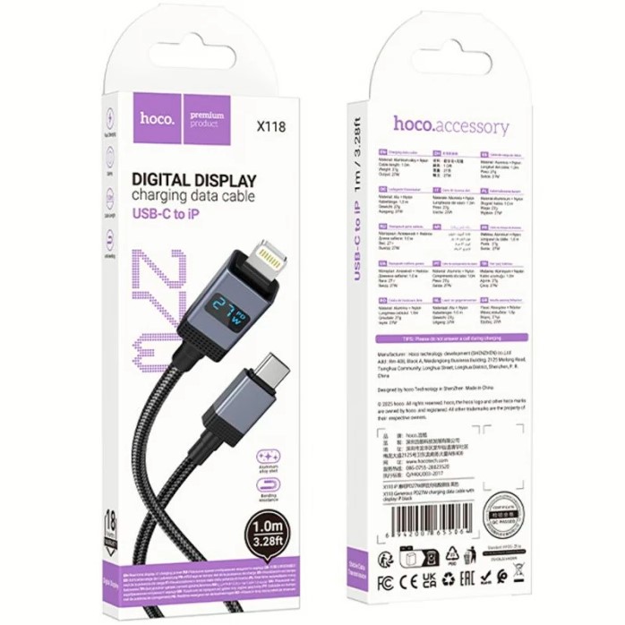 Кабель Type-C для Iphone HOCO X118 1m 27W Black