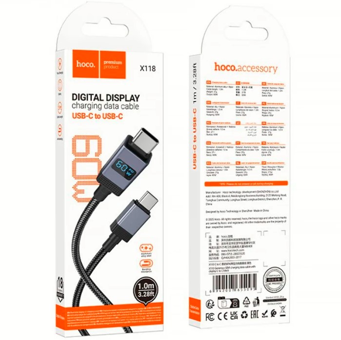 Кабель Type-C для Type-C "HOCO X118 60W 1m Black