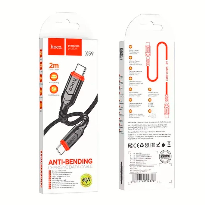 Кабель Type-C для Type-C "HOCO X59 60W 2m Black
