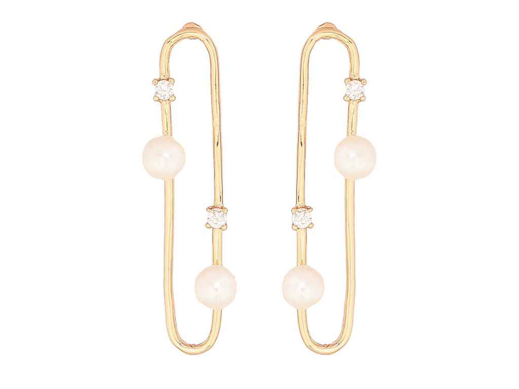 Сережки пусети позолота 18K «Візерунок з кристалами та перлинами» 285908 ТМXUPING