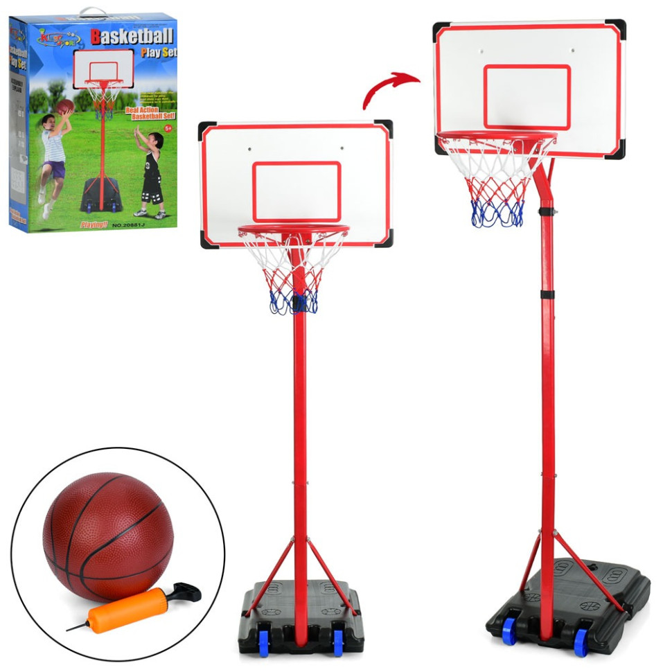Готовы к игре? Этот баскетбольный набор — идеальный подарок для юных спортсменов, которые мечтают освоить игру и устроить настоящие соревнования прямо у себя дома! С этим комплектом ваш ребёнок сможет не только весело проводить время, но и развивать координацию, меткость и выносливость.Особенности набора:Прочная регулируемая стойка: Металлическая стойка легко регулируется по высоте — от 206 см до 257 см. Она «растёт» вместе с ребёнком, поэтому играть будет удобно и малышам, и подросткам.Устойчивая конструкция: Основание можно заполнить песком или водой, чтобы обеспечить максимальную устойчивость даже во время самых активных игр. Два колеса в основании позволяют легко перемещать стойку по площадке.Качественные материалы: Пластиковый щит размером 70 x 46 см и прочное металлическое кольцо диаметром 39 см с сеткой выдержат множество бросков и прослужат долго.Полный комплект для игры: В наборе есть всё, что нужно для немедленного старта: мяч и насос, чтобы сразу начать тренировки и весёлые матчи.