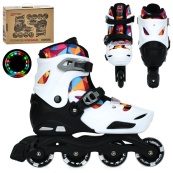 Ролики — это не просто развлечение, а настоящий способ активного отдыха, укрепления здоровья и развития координации. Модель A4156-L — отличный выбор для подростков и взрослых, кто хочет уверенно кататься в городе, в парке или на специальных площадках. Эти роликовые коньки сочетают в себе комфорт, надежность и современный дизайн, а благодаря возможности регулировки размера они подойдут на несколько сезонов вперед. Модель особенно понравится тем, кто ценит легкость в управлении и стильный внешний вид.Идеальны как для начинающих, так и для более опытных райдеров — с ними можно уверенно прокладывать свой путь и наслаждаться каждым катанием.Преимущества модели:Регулируемый размер — подходят для обуви 39-42 размера, удобно настраиваются под ногу.Надежная фиксация — шнуровка и пластиковая бакля обеспечивают стабильность и безопасность во время катания.Легкая алюминиевая рама — прочная, устойчивая к нагрузкам и ударам.Качественные подшипники ABEC-7 — обеспечивают плавный, быстрый и стабильный ход.Колеса из полиуретана диаметром 70 мм — долговечные, обеспечивают хорошее сцепление с дорогой.Блестящие колеса — эффектная LED-подсветка активируется во время движения и делает катание еще более зрелищным.Готовы к использованию — ролики полностью собраны и упакованы в фирменную коробку.Длина стельки: 23 см