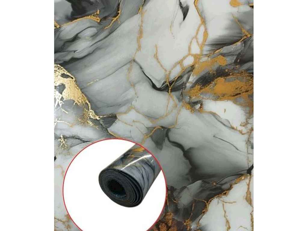 Самоклеюча PET плитка рулоні 600*3000мм WB-YC-162 (Сірий мармур з золотом) ТМD-C-Fix